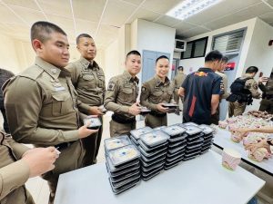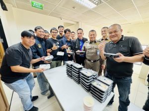 เสร็จสิ้นการประชุมข้าราชการตำรวจทุกนาย ร่วมรับประทานอาหารกลางวัน (ข้าวมันไก่ตอนประตูน้ำ) โดย รัตนา 1 จัดสวัสดิการแก่ข้าราชการตำรวจ สภ.รัตนาธิเบศร์