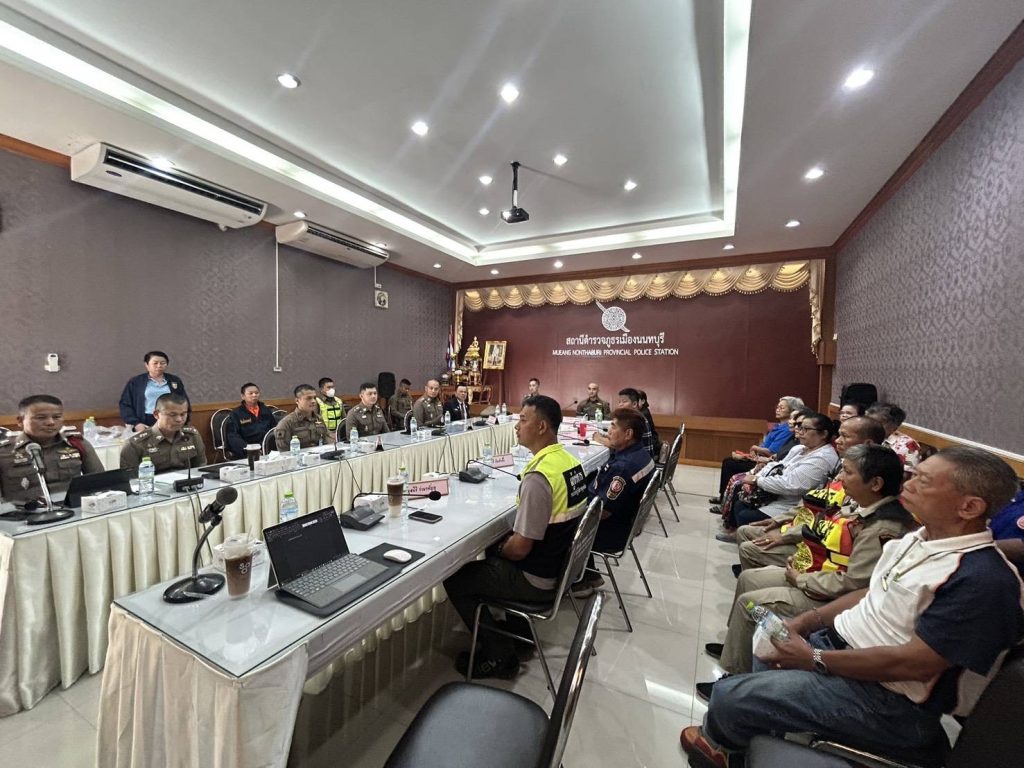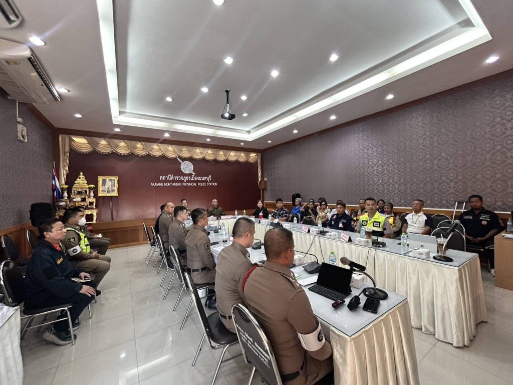 พร้อมด้วยข้าราชการตำรวจ สภ.เมืองนนทบุรี , เทศบาลนครนนทบุรี , มูลนิธิป่อเต็กตึ๊ง , มูลนิธิร่วมกตัญญู และตัวแทนชุมชนซอยเรวดี เข้าร่วมประชุม