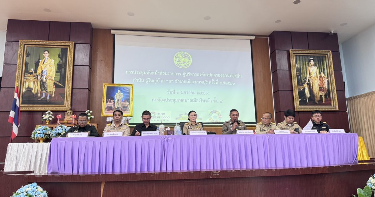 พร้อมด้วยหัวหน้าส่วนราชการ ผู้บริหารองค์กรปกครองส่วนท้องถิ่น กำนัน ผู้ใหญ่บ้าน ฯลฯ อำเภอเมืองนนทบุรี