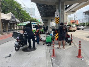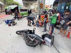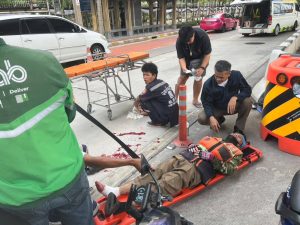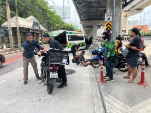 ระหว่างออกตรวจพื้นที่ ถึงบริเวณ หน้าศาลากลางจังหวัดนนทบุรี ถนนรัตนาธิเบศร์ ต.บางกระสอ อ.เมือง จ.นนทบุรี ได้พบอุบัติเหตุทางจราจร ระหว่างจักรยานยนต์ 2 คัน เฉี่ยวชนกัน มีผู้ขับขี่ได้รับบาดเจ็บ ชื่อนายถวิลฯ อายุ 68 ปี