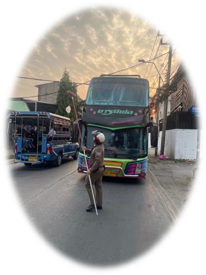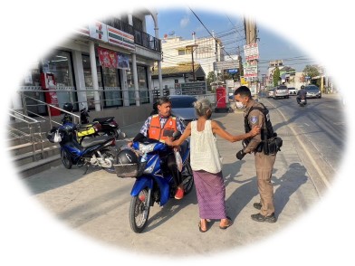 ส.ต.ต.ธนกฤต อิ่มคง ผบ.หมู่ (ป.) สภ.รัตนาธิเบศร์ปฏิบัติหน้าที่สายตรวจรถจักรยานยนต์ ระหว่างปฏิบัติหน้า