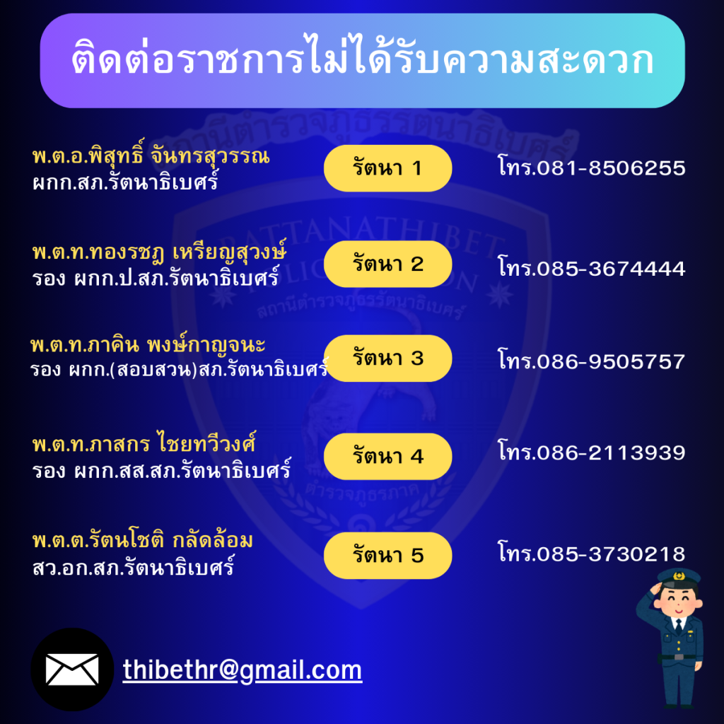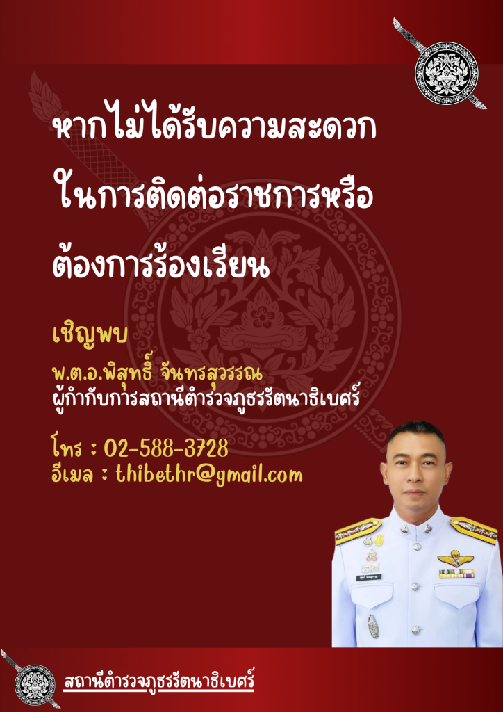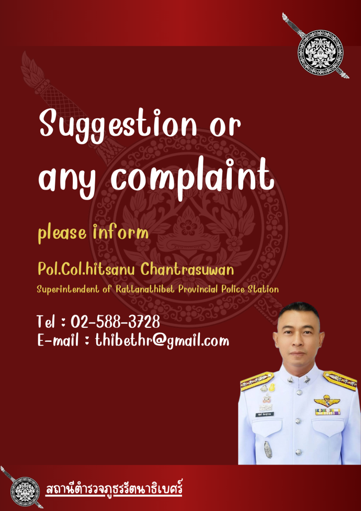 ช่องทางการแจ้งเรื่องร้องเรียนการทุจริต สถานีตำรวจภูธรรัตนาธิเบศร์